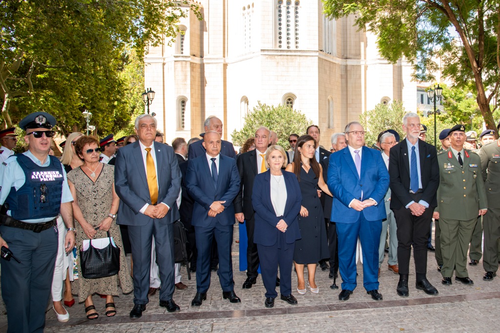 Η τελετή ξεκίνησε στις 12:00 το μεσημέρι με Επιμνημόσυνη Δέηση στον Ιερό Μητροπολιτικό Ναό Αθηνών, προεξάρχοντος του Θεοφιλέστατου Επισκόπου Θαυμακού κ. Θεοδώρητου, παρουσία του Υφυπουργού Εξωτερικών κ. Γιάννη Λοβέρδου, εκπροσώπων της Κυβέρνησης, της Βουλής, πολιτικών κομμάτων, της Περιφέρειας Αττικής, των δικαστικών αρχών, των Ενόπλων Δυνάμεων, των Σωμάτων Ασφαλείας, των πρυτανικών αρχών, αποστράτων και προσφυγικών σωματείων.